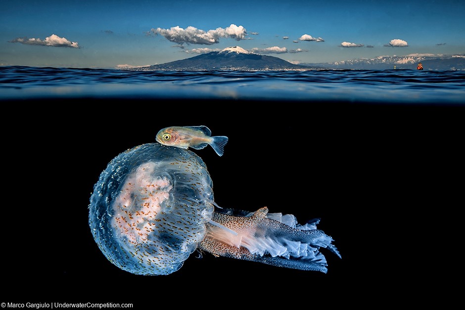 ‘Best in Show’ went to Italian photographer Marco Gargiulo, for an image featuring a snow-topped Mount Vesuvius and a juvenile imperial blackfish catching a ride on a jellyfish. The photo also took the Gold award for its respective category.