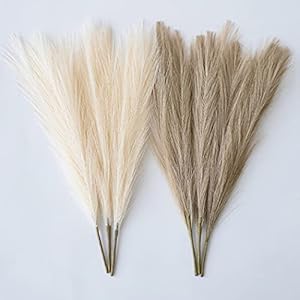 Dried and Preserved Flora, Home and Kitchen, Home Décor ProductsChagoArt-Pampas Grass Decor Tall-Faux Pampas Grass Small 17″-6 Stems-Beige and Taupe-Brown-Pompas Floral-Fake Pampas Grass-Artificial Pampas Grass Vase-Dried Pampas Grass-Pompous Grass Branches Large