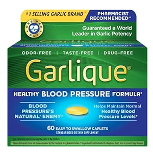 Health and Household, Herbal Supplements, Vitamins and Dietary SupplementsGarlique Garlic Extract Supplement, Healthy Blood Pressure Formula, Odorless & Vegan, 60 Caplets