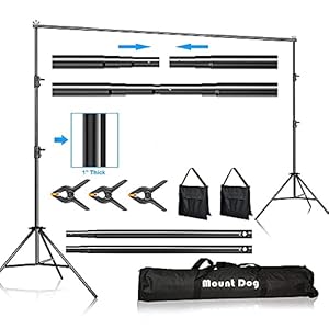 WARRANTY & CUSTOMER SERVICE: 100% original MOUNTDOG brand new. 12 months warranty for quality issues. Any question, feel free to click “MountDog” and “Ask a question”, welcome to send message to us. KIT INCLUDES: [4] x Interlocking Cross Bar, [2] x Adjustable Tripod Stand, [3] x Heavy Duty Spring Clamp, [2] x Sandbag, [1] x Carrying Bag; Note: Backdrop is not included.