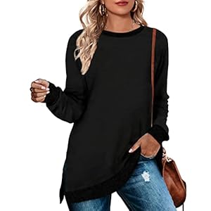 🍁【Designs】 Classic Crewneck/Round Neck Sweatshirts, Color Block on the Long Sleeve Sweaters, Loose Fit High Low Side Split Tunic Tops. The Simple Shirts is Casual Chic and Never out of Date.