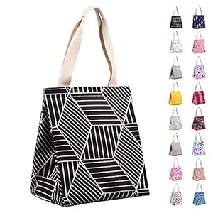 ❤INSULATED & FOOD-GRADE MATERIAL: The reusable lunch tote bags are constituted with Pearl cotton and aluminum foil, which is known for its excellent air isolation and temperature retaining, keeping your food cold/warm for hours. Tight stitching without tearing, durable and sturdy. Can Keeps your food warm or cold for hours well. The 100% cotton exterior layer provides comfort to your skin.
