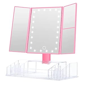 [Tri-Fold Cosmetic Mirror with 1x 2x 3x magnification] you can see the tiniest beauty details,great for grooming brows,applying eyeliner,and tweezing.And the Organizer can hold jewelry or cosmetics like watch, earrings, bracelets, etc.