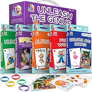 MORE THAN JUST NUMBERS AND LETTERS – Unleashing the Genius in your kids doesn’t only involve teaching them the basics of ABC’s and 123’s. Toddlers must also be introduced to fundamental life knowledge that is why this 182 Pre-K-K Cards St includes a special pack that discusses manners, greetings, feelings, and weather.