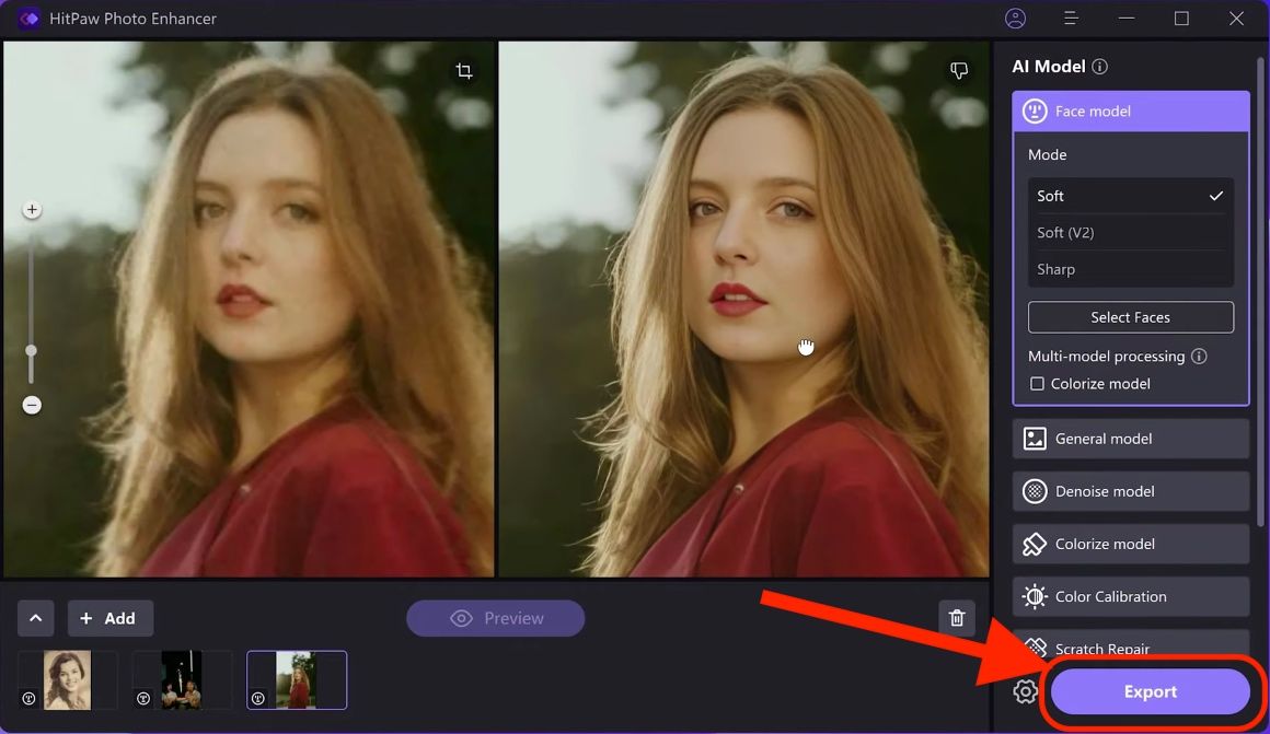The face model on HitPaw Photo Enhancer is specifically designed to enhance and improve face restoration and old photo repairing. It focuses on adjusting and refining facial features, such as skin tones, smoothing out imperfections, and enhancing facial details to make the faces in your photos look their best. Whether it’s reducing blemishes and wrinkles, improving skin texture, or enhancing facial expressions. This AI model is tailored to bring out the natural beauty and appeal of the people in your photos.