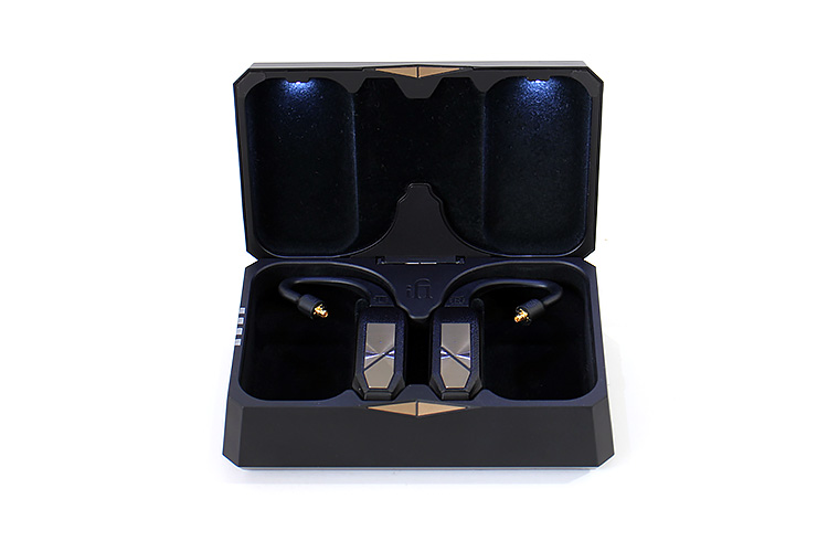 Oh my, this cradle has bling. The iFi Audio GO pod cradle is the only model to have spotlights inside the cradle which is another first. They turn on soon as you open the door and display the suede-like lined innards plus the ear dongles.