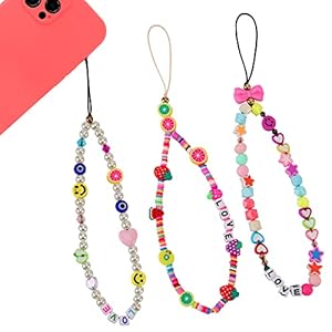 【MATERIAL OF CHARM STRAP】: The phone charm lanyard is made of artificial pearls + acrylic beads + polymer clay and is strung together with a strong nylon rope, cell phone strap is not easy to break. You will get three different styles, lengths, and colors of cell phone charm straps, and each string ting charm for phone can be used to match different clothing or mobile phone cases.SKU: n/a -