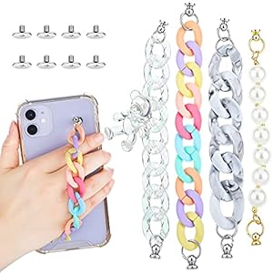 6 Pieces Phone Chain Phone Colorful Pearls Chain Bracelet Strap Drop Resistance Phone Grip Holder for DIY Phone Case…