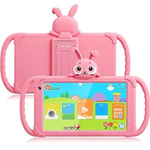 【The Most Lastest Brand New Kids Tablets】TOPELOTEK Cutest Design Bunny Kids Tablet with handles, GMS Certified Kid App content iWAWA Pre-installed, Dual System Parent Mode/Kid Mode, Highest Android 9.0 Version,1.5 GHz Quad-Core Processor 1+16GB Wifi Bluetooth. Android System Supporting all the Languages, including Spanish