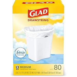 Trash BagsGlad Trash & Food Storage Medium Kitchen Drawstring Trash Bags 8 Gallon White Trash Bag, Fresh Clean Scent, 80 Count…