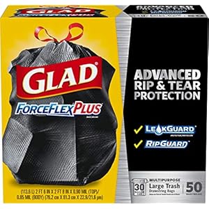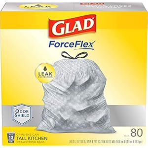 Trash BagsGLAD ForceFlexPlus XL X-Large Kitchen Drawstring Trash Bags, 20 Gallon Grey Trash Bag for Large Kitchen Trash Can, Fresh…