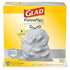 Trash BagsGlad ForceFlex Protection Series Tall Kitchen Trash Bags, 13 Gal, Unscented OdorShield, 90 Ct (Package May Vary)