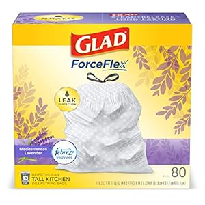 Trash BagsGLAD ForceFlexPlus with Febreze Tall Kitchen Drawstring Trash Bags, 13 Gallon White Trash Bag for Kitchen Trash Can…