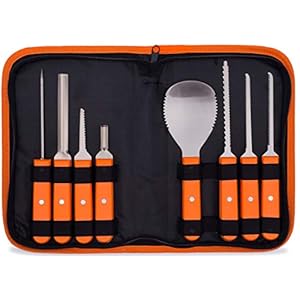 📦PUMPKIN CARVING KIT – Includes 8 pieces of pokers, scoops and more in a carrying case.