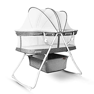 Furniture, Home and Kitchen, Nursery Furniturebesrey Bassinet for Baby, 3 in 1 Portable Baby Bassinets, Rocking Cradle Bed, Easy Folding Bedside Sleeper Crib, Quick…