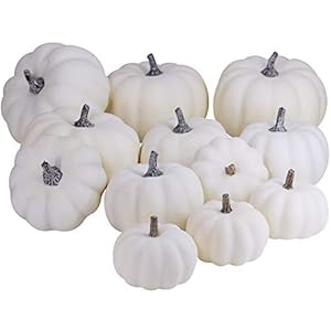 Artificial Plants and Flowers, Home and Kitchen, Home Décor ProductsBESTTOYHOME 12 PCS Assorted Sizes Rustic Harvest White Artificial Pumpkins for Halloween, Fall Thanksgiving Decorating…