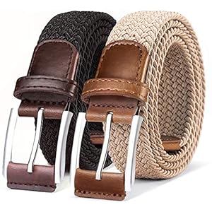 Men, Men's Accessories, Men's BeltsBULLIANT Belt for Men 2Pack, Mens Stretch Braided Web Belt Elastic for Casual Golf Hunting Pants Jeans,1 3/8″