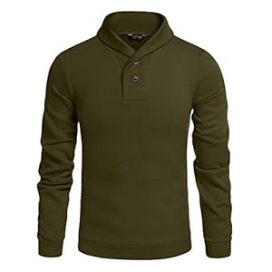 Sophisticated Sweater Provide Classic & Modern Look: This Coofandy long-sleeve sweatshirt features solid pattern, ribbed cuffs and hem, especially unique for its shawl collar. Leave the button undone to create a more leisure lookingSKU: n/a