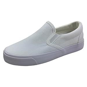 SLIP ON SNEAKERS: These low top canvas shoes are easy on & easy off. Featuring white sole and canvas upper, they great for everyday wear.