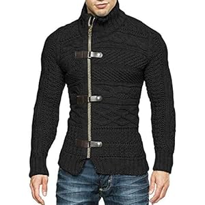 Karlywindow Men’s Cable Knitted Oplique Zip Button Front Long Sleeve Cardigan Sweater
