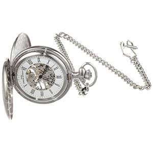 Chrome finish brass 47mm double hunter case with a matching curb chain