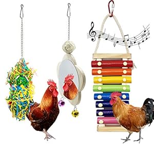 Birds, Pet Supplies, Toys For BirdsEBaokuup 3PCS Chicken Toys for Hens, Chicken Xylophone Toy, Chicken Mirror Toy with Bell and Foraging Shredder Toys…