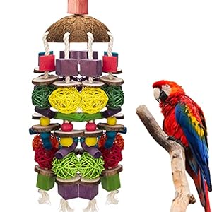 Birds, Pet Supplies, Toys For BirdsEBaokuup Large Parrot Chewing Toy – Bird Parrot Blocks Knots Tearing Toy Bird Cage Bite Toy for African Grey, Macaws…