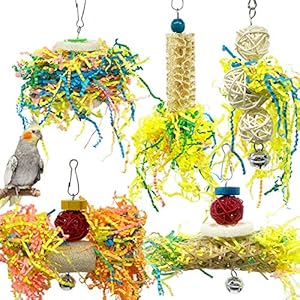 Birds, Pet Supplies, Toys For BirdsCooShou 5Pcs Small Parrot Chewing Toys Bird Shredder Toys Bird Parrot Foraging Hanging Toys for Small Birds Parakeets…