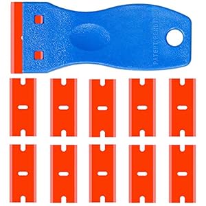 A safe plastic razor blade is the ideal tool to scrape unwanted materials anywhere. It is a plastic razor blade, but sharp enough to remove stubborn residue. The plastic design prevents sharp blades from being damaged. Steel razor blades can easily scratch deep into auto paint, window tints or other surfaces, but plastic razor blades can do the same job without scratching or shaving. This great gadget makes your cleaning easy.