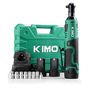 Power and Hand Tools, Power Tools, Tools and Home ImprovementKIMO 3/8″ Cordless Electric Ratchet Wrench Set, 40 Ft-lbs 400 RPM 12V Cordless Ratchet Kit w/ 60-Min Fast Charge, Variable Speed Trigger, 2-Pack 2.0Ah Lithium-Ion Batteries, 8 Sockets