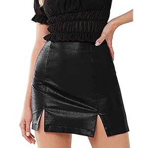 MANGOPOP Women’s Basic High Waist Faux Leather Bodycon Mini Pencil Skirt