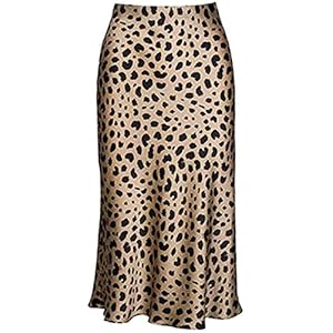 Clothing, Skirts, WomenLeopard Skirt for Women Midi Length High Waist Silk Satin Elasticized Cheetah Skirts