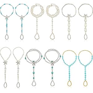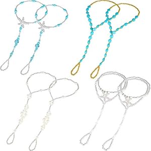 Anklets, Jewelry, WomenHicarer 6 Pairs Feet Jewelry Barefoot Sandals Toe Rings Foot Chains Starfish Faux Pearls Elastic Beaded Turquoise Anklet…