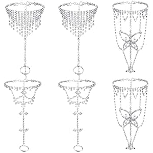 Anklets, Jewelry, WomenHicarer 6 Pieces Beach Wedding Anklet Barefoot Sandals Foot Jewelry Rhinestone Foot Anklets Ankle Chain