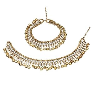 Efulgenz Indian Bollywood Faux Kundan Pearl Wedding Bridal Anklet Pair with Bells Bracelet PayPal Foot Jewelry