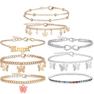 Exquisite design: each anklet is filled with personality, including filigree butterfly, silver butterfly, colorful rhinestone, gold beads and more, these bohemian inspired anklets are ready for your next beach party, and will add a personal touch to your summer style