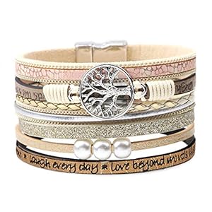 💥 Comfortable Wear More Compliments ❤️ Wrap Bohemian Bracelet,Represents the Infinity love,Genuine Leather Multilayer Design,Comfortable to Wearing,Easy to Put,no Pungent Smell.Super Strong Magnetic Closure,no Worry About it Coming off , Tree of Life Wrap hippie bohemian Bracelet Mothers Day Easter Confirmation Gift jewelry for women clearance Teenage Girls