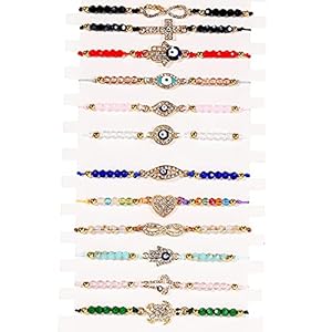Bracelets, Jewelry, WomenBONITTER 24/12 PCS Evil Eye Bracelets Pack For Women Girls Boys Mexican Braclets Set Protection Amulet Anklets Jewelry…