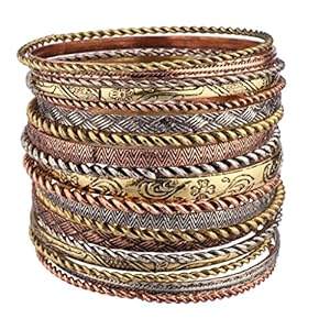 Set of 3 Bangle Bracelets: These timeless bangle bracelets feature an easy to wear stretch design and comes in beautiful silvertone, goldtone and black for mixing and matching or wearing all together; Includes 3 bracelets