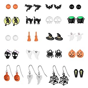 HALLOWEEN JEWELRY FOR PARTY: These stud earrings pack are perfect for Halloween, party, cosplay, Halloween make up and daily wearing. Includes drop earrings and stud earrings, you can share with your family and friends.SKU: n/a -