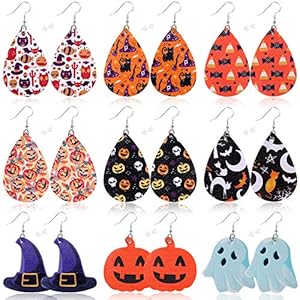 Package:Come with 9 styles of Halloween leather earrings, enough for you to wear in your daily life or you can wear it with your friends together, suitable for most people.