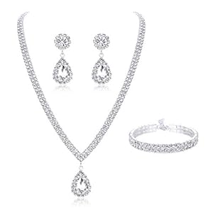 Jewelry, Jewelry Sets, WomenSubiceto Bridal Jewelry Set for Wedding Simple Necklace Teardrop Dangle Earrings Bracelets Crystal Prom Bridal…