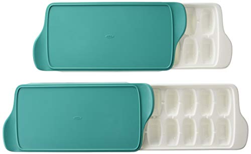 Freeze perfect portions of homemade baby food with the OXO baby food Freezer Tray. A patented cover lets you release one cube at a time. A patented cover lets you release one cube at a time or as many cubes as you need. The innovative tray design releases cubes easily, and the cover also makes it easy to stack multiple trays, and eliminates freezer odor from permeating your cubes so baby food stays fresh. Makes 14, 3/4 Ounce cubes. Dishwasher safe.