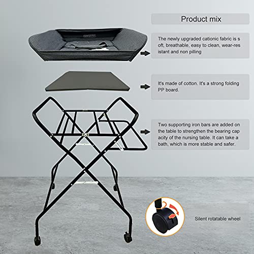 Holy Cat Baby Portable Changing Table with Wheels Adjustable Height Folding Infant Diaper Station Mobile Nursery Stand…