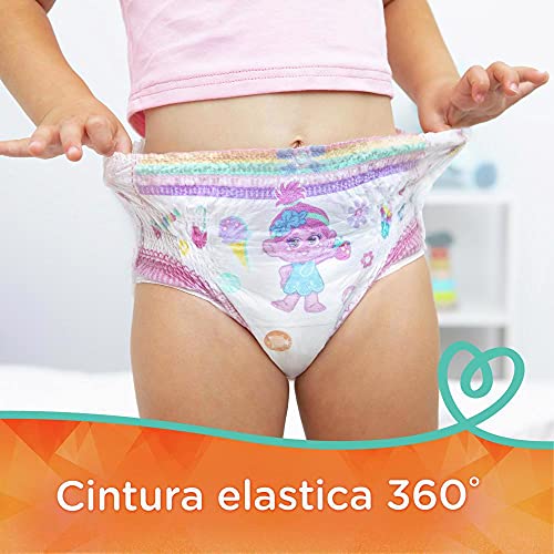 Pampers Easy Ups training pants – featuring your favorite Trolls characters – are a fun and easy way to prepare for underwear. Our dynamic 360° Stretchy Waistband moves with your toddler for a fit that’s just like the real thing and helps them pull up and down their training pants with ease. Pampers Easy Ups are the only training pants with Extra Absorb Channels for outstanding Pampers Leak Protection, all day AND night.