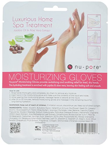 SPA TREATMENT: Nu-pore spa gloves for dry hands allows you to have spa treatments at home that are fun and easy. To use wash and dry hands before placing them in the gloves. Massage your hands in the gloves to help absorb the moisturizing essence, relax for 20-30 minutes, then remove and massage remaining liquid into hands for long-lasting hydration.