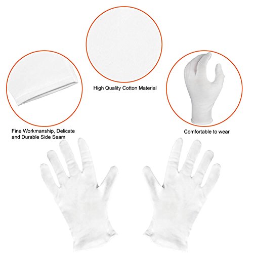 Paxcop white cotton gloves are easy on an off, and easy to pick up or handle things when wearing them. Thumb is sewn separately for best comfortable fit, will not come off easily. Comfortable for hand spa, cosmetic, moisturizing and can be used for photograph, archival, art handling and jewelry silver coin inspection.