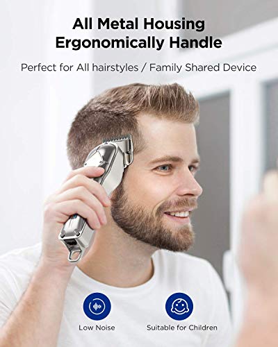 【LED Display, Ergonomical Handle】 Large LED display of haircut clippers clearly shows remaining percentage of battery. This professional hair clipper for men is very comfortable to hold, easy to use and clean even for first-time users.