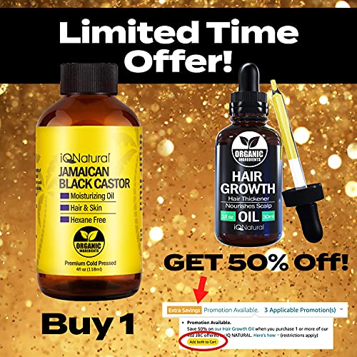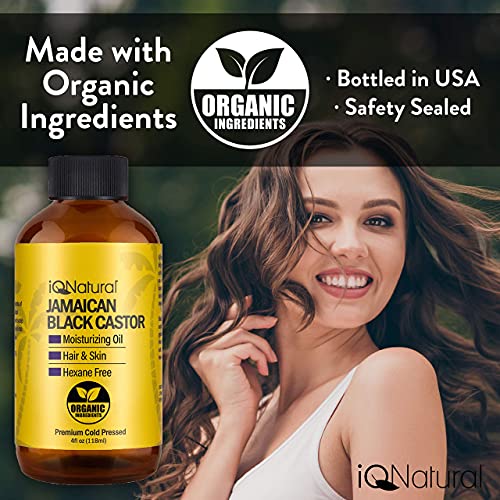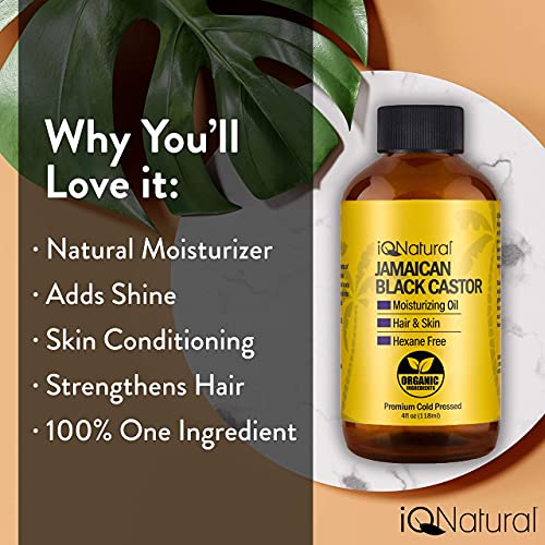 iQ Natural Jamaican Black Castor Oil for Hair Growth, Hair Oil, Hair Growth Oil, Scalp Oil, 100% Cold Pressed Castor Oil…