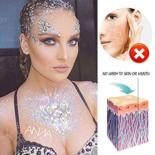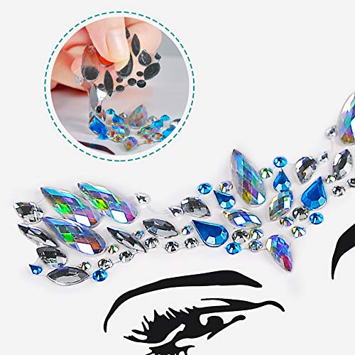 💋 【Reusable Strass The rhinestone face stickers can be self-adhesive, and easy to apply, just peel off and stick on the face. Gemstones are removable, repositionable, reusable. Once the glue has dried, it can be reapplied with eyelash glue